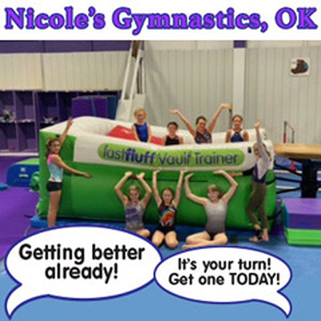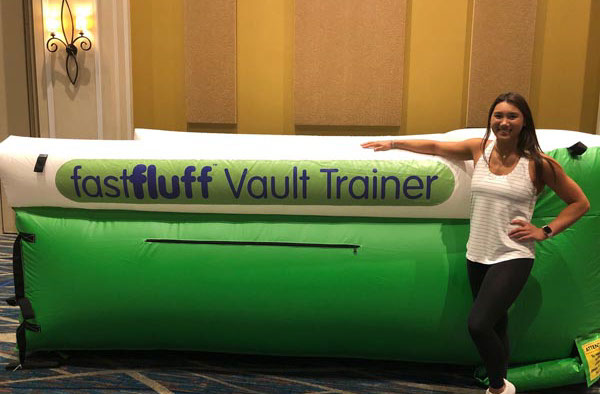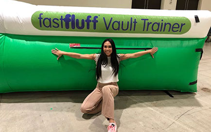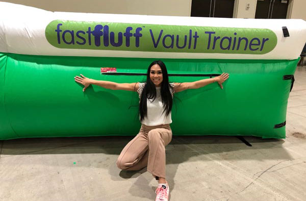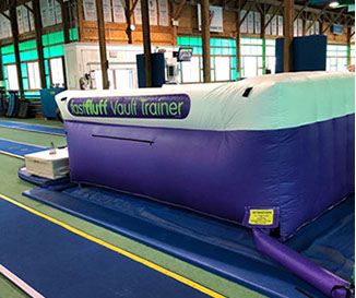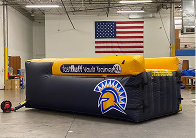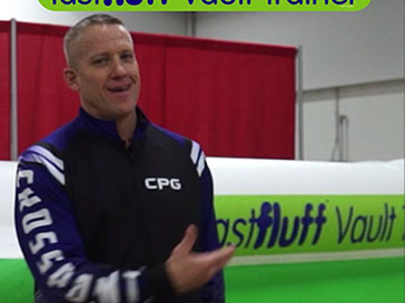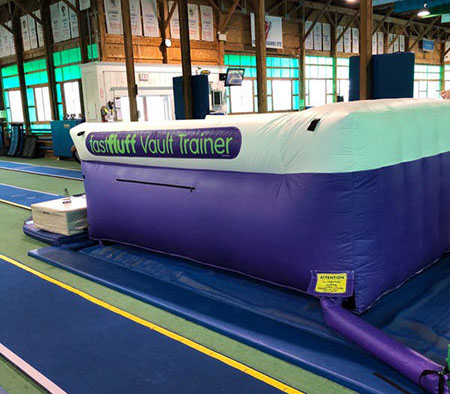 You have a limited time to get all your work done during the vault rotation. Hunting down all mats to use and moving them takes up precious time that could be spent practicing. You don’t want to waste 5-10 minutes every time you practice. Wasted minutes wastes turns. With a push of a button the NEW FastFluff™ Inflatable Vault & Floor Trainer inflates. Now its time to train!
