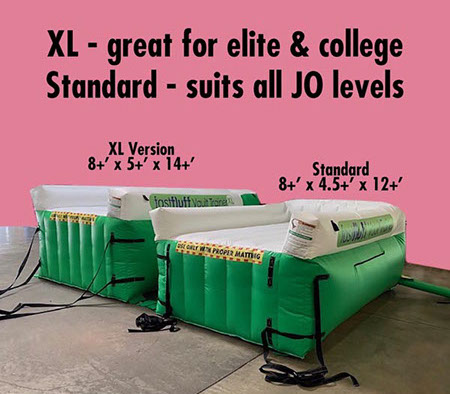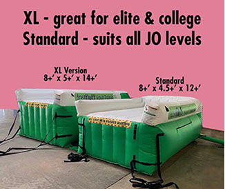 Dragging mats around the gym is hard. It’s hard on your body, hard on the equipment you drag it across, and it’s hard on the mat handles and covers. Then, it’s hard to move them out of the way to get to the fun part. Landing great vaults! Now, simply turn off the blower and in less time it takes to walk back to start again, your area is ready to go onto the next part of training, the landing.