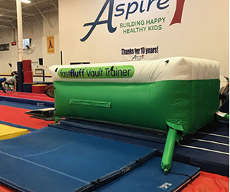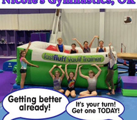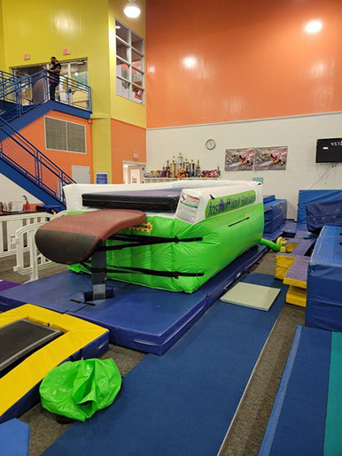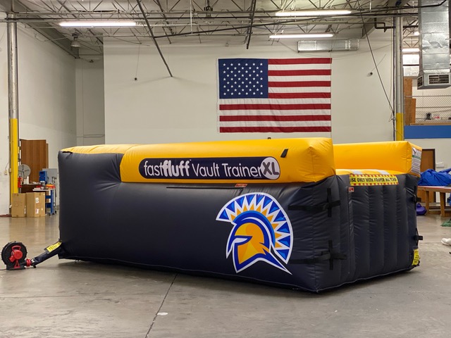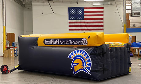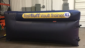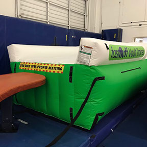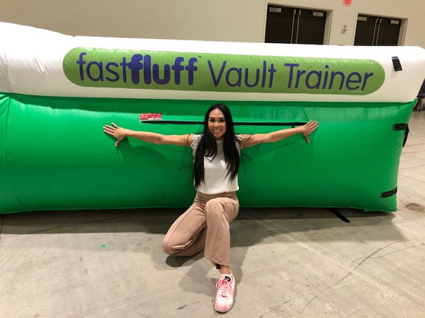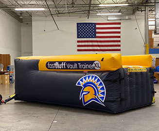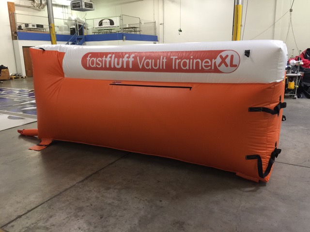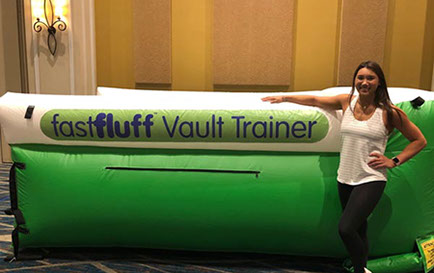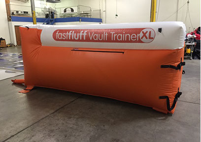 You have a limited time to get all your work done during the vault rotation. Hunting down all mats to use and moving them takes up precious time that could be spent practicing. You don’t want to waste 5-10 minutes every time you practice. Wasted minutes wastes turns. With a push of a button the NEW FastFluff™ Inflatable Vault & Floor Trainer inflates. Now its time to train!