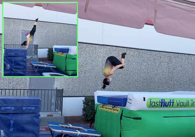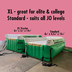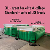 Dragging mats around the gym is hard. It’s hard on your body, hard on the equipment you drag it across, and it’s hard on the mat handles and covers. Then, it’s hard to move them out of the way to get to the fun part. Landing great vaults! Now, simply turn off the blower and in less time it takes to walk back to start again, your area is ready to go onto the next part of training, the landing.